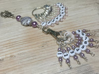 These handmade stitch markers are designed to help you keep track of the number of rows you have worked on your project. This set includes a lanyard holder to keep them all together. The piggyback system will allow you to count from 1-99.