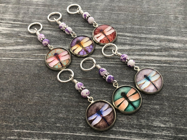 Snag Free knitting stitch markers with mixed dragonfly charms to help you get your knitting or crochet (available with lobster clasps also) projects done without mistakes. Keep track of your progress and all your pattern changes. The rings are snag free and will glide along your knitting needles with ease. Created with the knitter and their yarn in mind. All possible openings are permanently closed and smooth for snag free results.