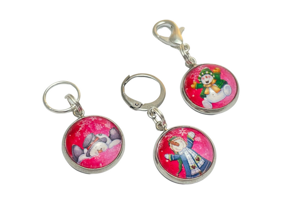 Adorable Snowman Stitch Marker Charms for Knitting or Crochet, Closed Rings, Lever Back Clasps, or Lobster Clasps