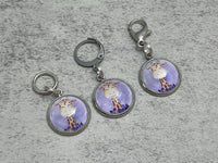 Charmed stitch markers with cutest little giraffe images and your favorite attachment style! You can choose closed snag free rings, rings that open and close, or 14mm lobster clasps. A great tool for knitting or crochet. Great when you need to mark a mistake or when a pattern calls for moving markers every row.