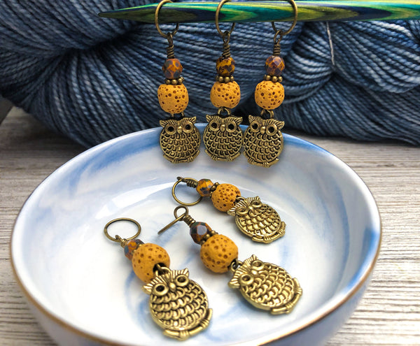 Bronze Owl Stitch Markers for Knitting or Crochet, Snag Free