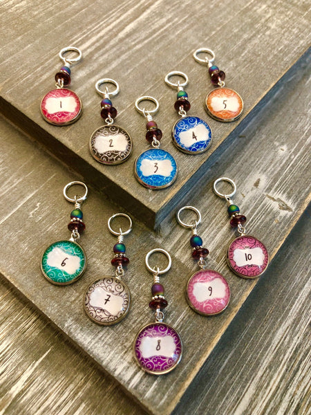 Number stitch markers are an essential part of your knitting. They help with tracking your progress and keeping your projects on track! If you have ever walked away from your knitting and thought "I will remember where I am at" only to find out you don't remember because you didn't get back to it for hours- then you need these to make your life easier. Simply mark your row when you start it and you are good to go!