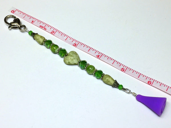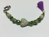 This adorable green heart beaded scissor fob decorates your scissors, makes them easy to find, and with the rubber tip cover it makes them safe to take on the go.