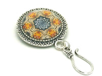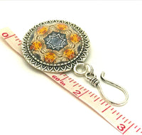 This gorgeous amber medallion fractal design magnetic pin is perfect for your Portuguese knitting sessions. The knitting pin features a strong magnetic attachment design to keep it from falling off your clothing. This magnetic pin is designed to help hold your yarn while you knit using the Portuguese knitting method.
