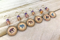 This set of elephant knitting markers was inspired by the African culture with a Bohemian style. Let them remind you of pattern changes so you don't make mistakes. The rings are snag free and will glide along your knitting needles with ease. Created with the knitter and their yarn in mind. Also available with lobster clasps for crochet.